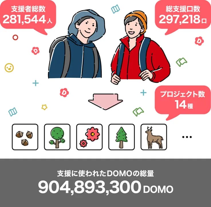 Total DOMO points (904,894,300) collectively accumulated has been invested in 14 restoration projects