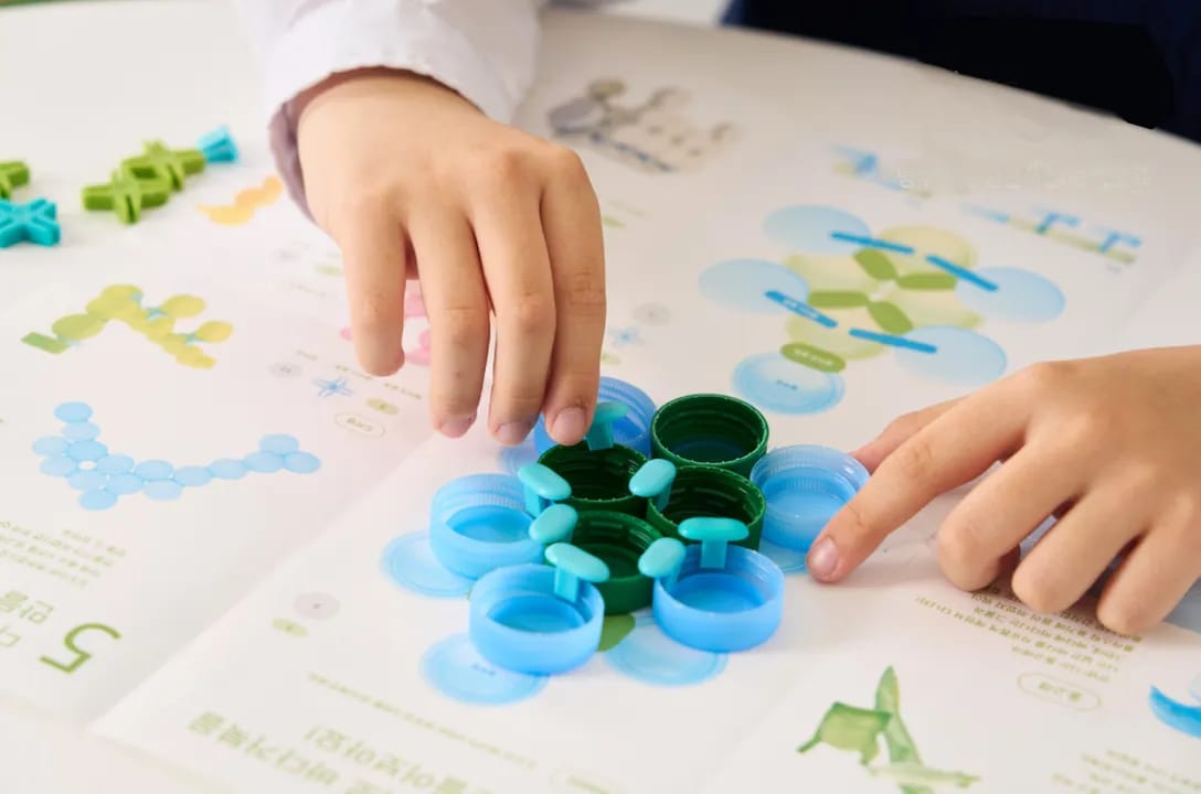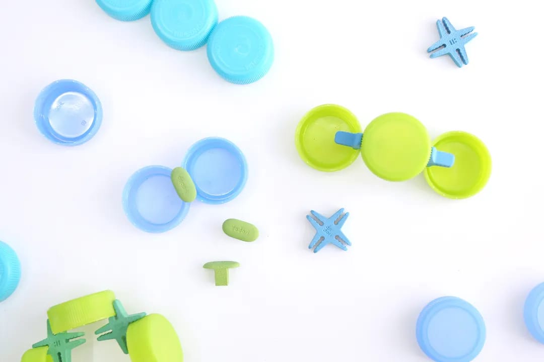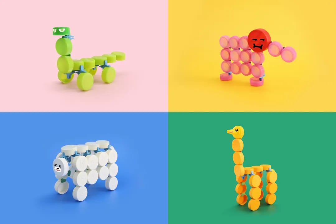 Instead of buying new plastic toys, the Play31 team encourages children to reuse discarded items for play. In 2021, South Korea's per capita PET bottle consumption was around 96 bottles (Good Design Award 2023). Unfortunately, plastic bottle caps are not easily recyclable due to their small size. The team saw potential in these colorful and safe bottle caps, and wanted to find ways for both children and adults to creatively repurpose them as engaging toys. This is how the Dodori project began.