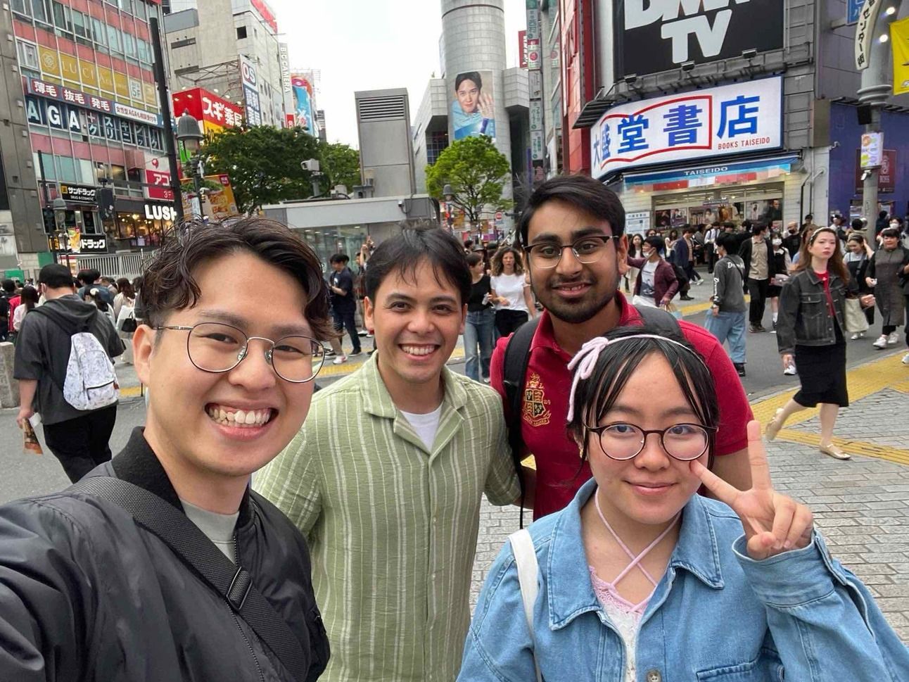 From left to right: Matthew-Anindya-Sarthak-Me in Shibuya.
